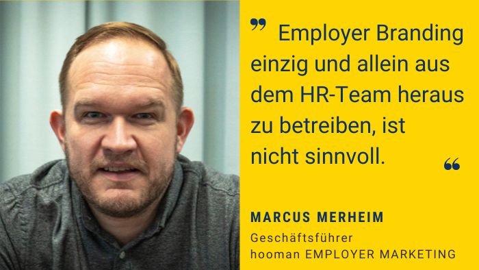 Laut Marcus Merheim, Geschäftsführer hooman Employer Marketing, löst der Begriff Employer Branding in HR-Abteilungen mitunter regelrecht Panik aus. „Plötzlich geht es um Themen wie Marke, um externe Kommunikation und um Positionierung. Viele HRler wissen nicht damit umzugehen, weil das nicht ihr Terrain ist“, sagt er. In vielen Unternehmen sei dies der Grund, warum das Thema nicht richtig nach vorne gebracht werde.