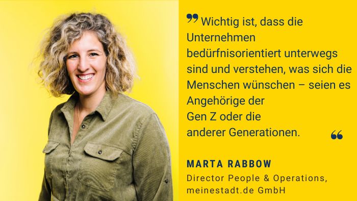 Sascha Theisen warnt indes davor, sich komplett der Gen Z auszuliefern. „Sowohl im Recruiting als auch bei der Mitarbeiterbindung kommt es darauf an, alle Generationen im Blick zu haben und zum Beispiel die sehr motivierte Gen 50plus auf dem Radar zu behalten“, sagt er. „Wichtig ist am Ende, dass man bedürfnisorientiert unterwegs ist und versteht, was sich die Menschen wünschen – seien es Angehörige der Gen Z oder anderer Generationen“, spinnt Marta Rabbow diesen Gedanken weiter. Unternehmen sollten aber auch transparent machen, was sie nicht bieten könnten. Das heißt: Die Auseinandersetzung mit der eigenen Identität als Arbeitgeber ist einmal mehr entscheidend.