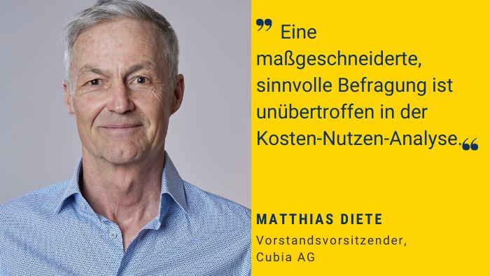 Diete von Cubia zieht ein Fazit: Das persönliche Gespräch sei „nicht zu toppen“. Es folgen das 360-Grad-Feedback, die MAB und das Passive Listening als Austauschformate mit den Mitarbeitenden. „Je nach Situation kann alles davon berechtigt und sinnvoll sein. Ich selbst bevorzuge die Formate, die nah am Menschen sind.“ Das sei aber ab einer gewissen Organisationsgröße aus Kapazitäts-, Zeit- und Kostengründen kaum möglich. Er resümiert: „Eine maßgeschneiderte, sinnvolle Befragung ist unübertroffen in der Kosten-Nutzen-Analyse.“