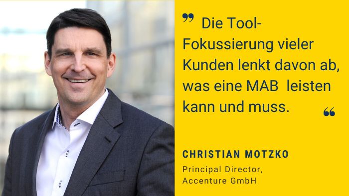 So oder so scheint der Folgeprozess immer wichtiger zu werden. Christian Motzko, Principal Director bei der Accenture GmbH, hat einen Wandel in der Erwartungshaltung der Unternehmen bemerkt: „Unsere Kunden haben den Anspruch, positive Effekte aus der MAB zu erzielen, und messen uns Berater zunehmend daran. Das war früher anders“, erläutert er. Der Bedarf der Kunden kann also nur dann durch den Anbieter gedeckt werden, wenn dieser mehr vermag, als nur eine Befragung sauber umzusetzen.“