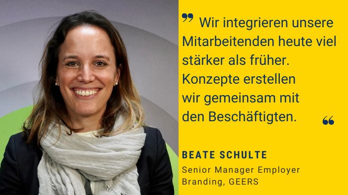 Als Senior Manager Employer Branding beim Hörgeräteanbeiter GEERS erlebt Beate Schulte den beschriebenen Wandel regelmäßig bei ihrer Arbeit: „Wir integrieren unsere Mitarbeitenden heute viel stärker als früher. Konzepte erstellen wir gemeinsam mit den Beschäftigten, weil sie aus HR-Sicht unsere Kundinnen und Kunden sind.“ Früher hingegen seien HR- und Personalentwicklungskonzepte – zumindest gefühlt – nicht bedarfsorientiert geschrieben worden.