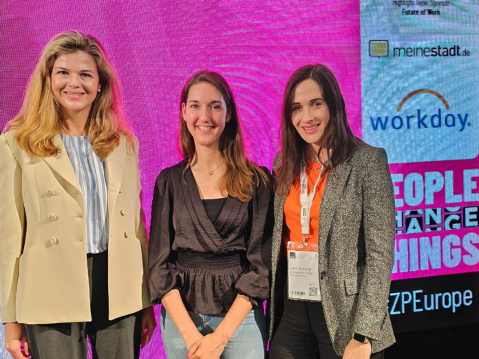 Eltern mehr in den Blick nehmen – das haben sich die beiden Unternehmen Henkel und emma & noah vorgenommen. Das DAX-Unternehmen hat daher zum Jahresbeginn eine Sonderregelung zur Elternzeit weltweit eingeführt. Das Start-up bietet eine Variante davon an, seitdem ein angestellter Vater danach gefragt hatte. Die Sonderregelungen sind losgelöst von der Familienstartzeit – auch als Väterzeit bekannt –, welche vom Gesetzgeber immer noch diskutiert, aber noch nicht beschlossen wurde. Beide Unternehmen stellten ihre Initiativen auf der Kölner Messe ZP Europe im Gespräch mit Personalwirtschaft-Redakteurin Lena Onderka vor.