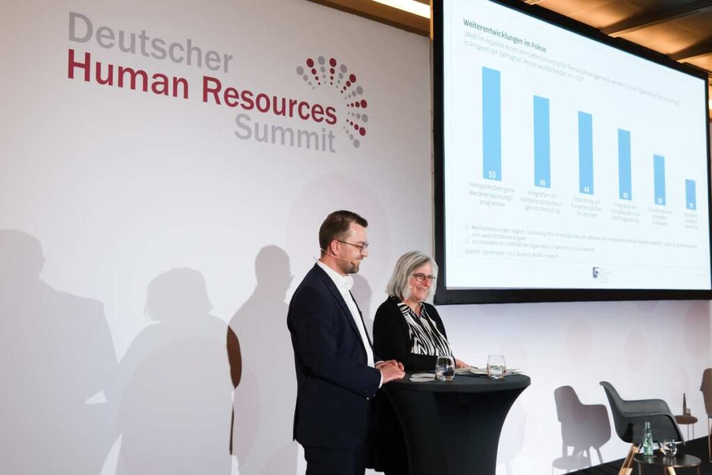 Jacqueline Preußer, Head of Research bei der F.A.Z. Business Media, und Christian van Ledden, Regional Sales Manager bei Cornerstone OnDemand Germany, stellten die neue Cornerstone-Studie vor. (Foto: Dirk Beichert BusinessPhoto)