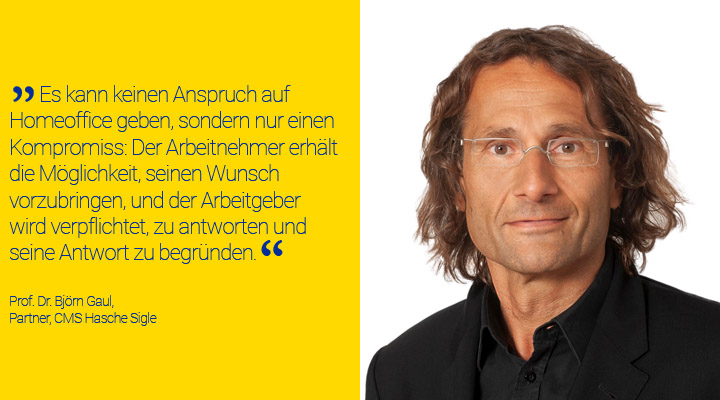 Und was den Vorstoß des Gesetzgebers auf ein Recht auf Homeoffice angeht, sehen die Diskutanten als Alternative nur einen Kompromiss: Da es weiterhin der unternehmerischen Freiheit unterliegen muss, sich für oder gegen eine Präsenskultur zu entscheiden, sollten Mitarbeiter die Möglichkeit erhalten, ihren Wunsch vorzubringen und Arbeitgeber verpflichtet werden, zu antworten und ihre Antwort zu begründen