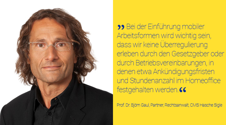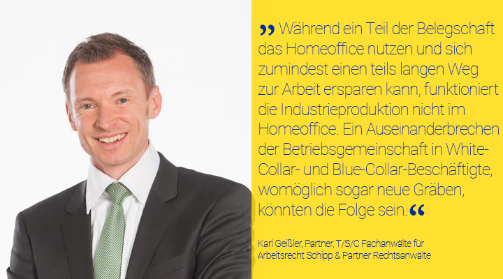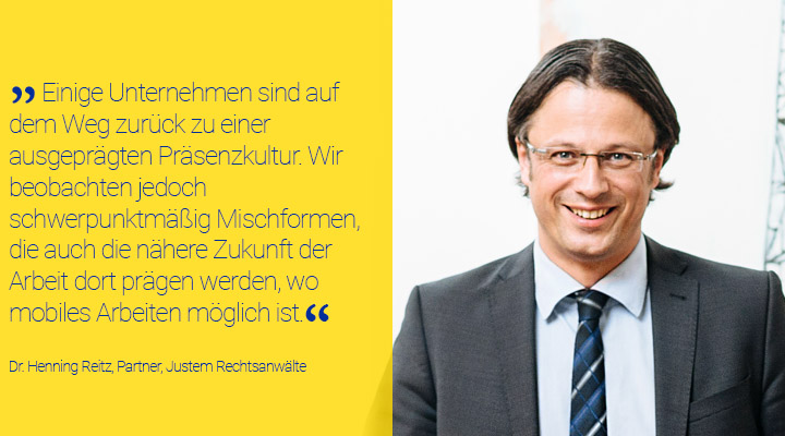 Darüber hinaus werden bei künftigen Regelungen zum mobilen Arbeiten Unternehmen wahrscheinlich mit einer Gerechtigkeitsdebatte konfrontiert werden. Während die einen, die überwiegend in Bürojobs arbeiten, mehr Flexibilität genießen können, müssen sich Mitarbeiter in Produktion und Verarbeitung an starre Ort- und Zeitregeln einhalten. HR müsse eine Neiddebatte beziehungsweise Spaltungstendenzen in der Belegschaft verhindern. Der Wunsch der Arbeitsrechtler: Der Gesetzgeber solle sich raushalten und Überregulierungen unterlassen. Arbeitgeber dagegen rekapitulieren, was sie in den letzten 18 Monaten gelernt haben, und weiterhin so viel wie möglich auf Vertrauen und Selbstverantwortung setzen.