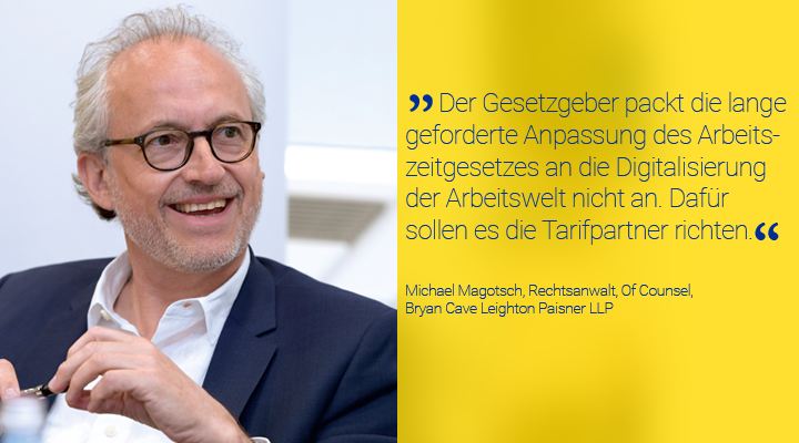 „Mehr selbstbestimmte Arbeitszeit“ und „mehr betriebliche Flexibilität in der digitalen Arbeitswelt“, so sieht es der Koalitionsvertrag vor und gewährt ausschließlich tarifgebundenen Betrieben Experimentierräume: Sie können die wöchentliche Höchstarbeitszeit und damit auch die Arbeitshöchstzeit pro Tag und die Mindestruhepausen zwischen zwei Arbeitstagen neu regeln. Die Unzufriedenheit von Seiten der Wirtschaftsverbände und Arbeitgeber könnte kaum größer sein. Der Gesetzgeber testet aus, was passieren kann und überlässt das Thema den Gewerkschaften. Ob sich praxistaugliche Ergebnisse erzielen lassen, halten die Arbeitsrechtler für fragwürdig. Die Mehrheit der Unternehmen in der digitalen Wirtschaft ist nicht tarifgebunden und deshalb weiterhin an das 24 Jahre alte Arbeitszeitmodell gebunden.