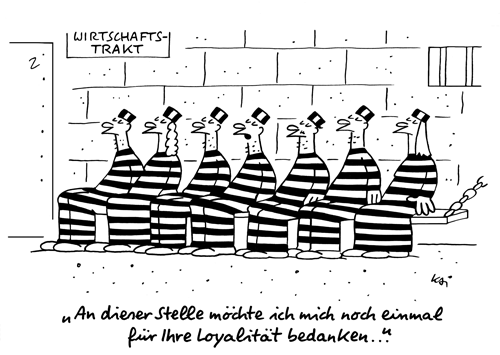 Bei vielen vor Gericht verhandelten Wirtschaftsskandalen spielen loyale Mitarbeiter eine große Rolle. Mitwisser, die die Schnauze hielten; Wegseher, die mit gelb-schwarz gepunkteter Armbinde auftraten – und immer ein Kadavergehorsam, der von den kriminellen Vorgesetzten als Loyalität genossen wurde. Das L-Wort tritt im Unternehmenstheater oft im Gespann mit dem „L-Konflikt“ auf: Was soll ich bloß tun, wenn meine (AbgasMess-)Werte mit denen meines Chefs nicht kompatibel sind? Bin ich illoyal meinem Chef gegenüber, fliege ich raus – bin ich loyal, könnte ich im Knast landen. Bin ich loyal meiner Familie gegenüber, möchte ich weder rausfliegen noch im Knast landen. Da das ganze Whistleblower-Gelaber in Unternehmen oft mehr Fake als Fakt ist, liegt der Ausweg aus diesem Dilemma nur im schnellstmöglichen Firmenwechsel.