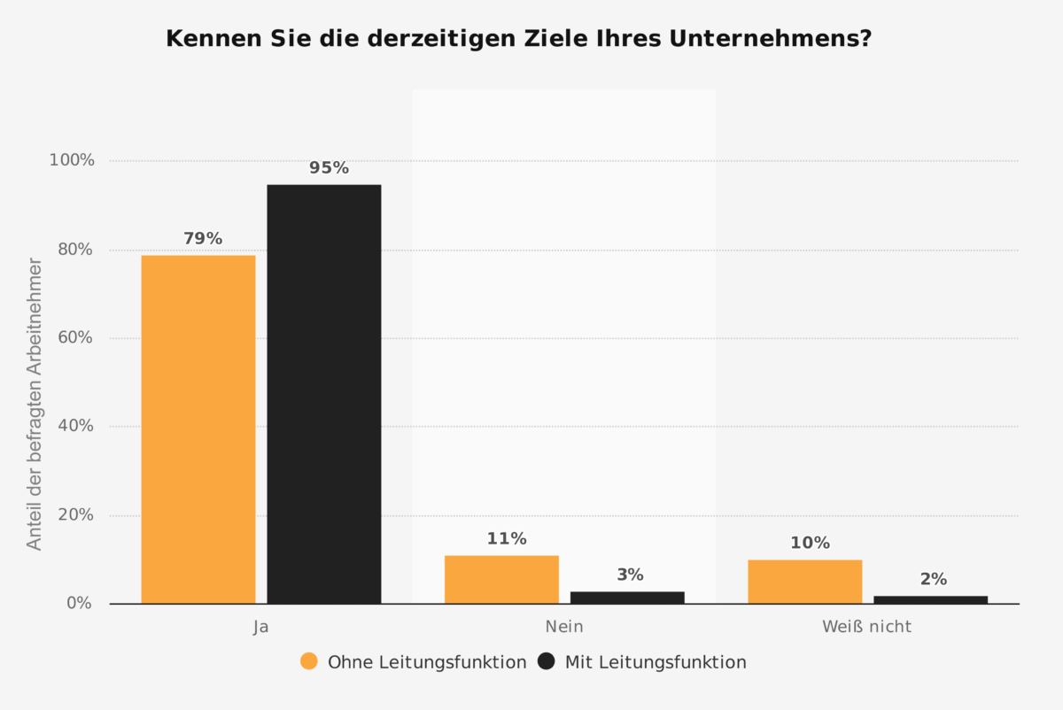 Bei Mitarbeitern ohne Führungsrolle herrscht Nachholbedarf bei der Kommunikation der Unternehmensziele. Diese sollten, unabhängig von der Position eines Mitarbeiters, an alle kommuniziert werden.