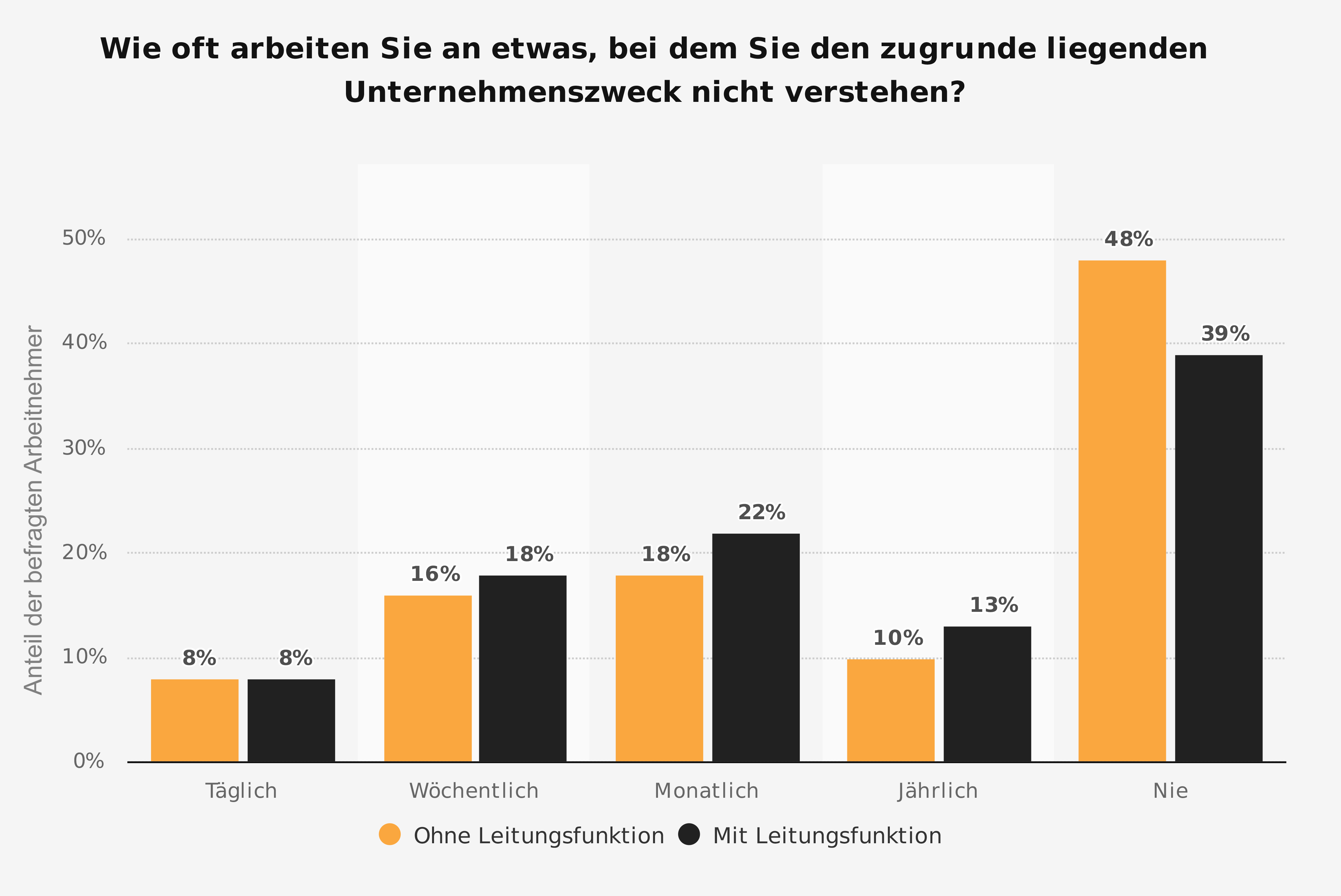 Im Durchschnitt arbeiten noch zu viele Mitarbeiter an Projekten und Aufgaben, deren Sinn und Zweck für das Unternehmen sich ihnen nicht erschließt.