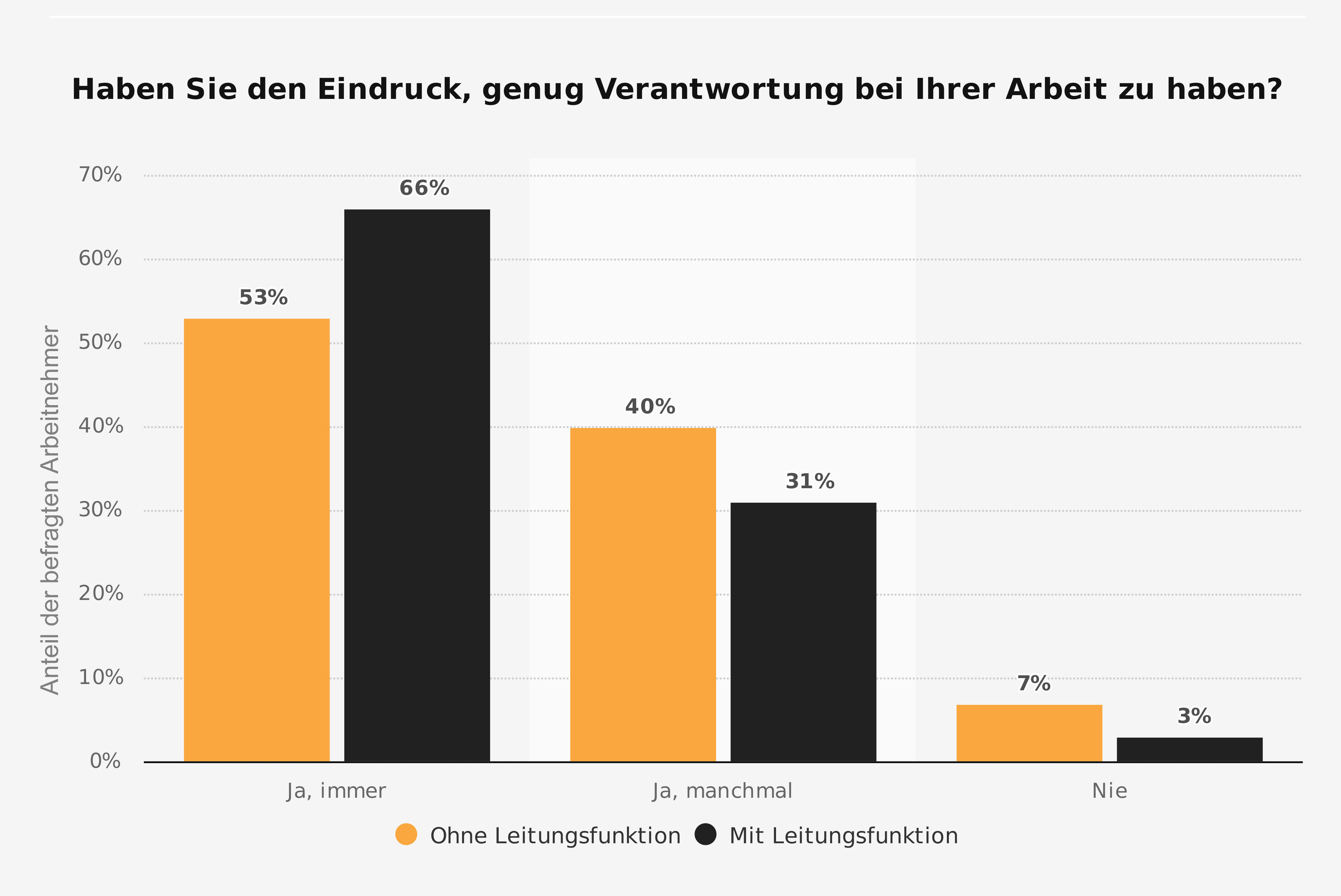Das Gefühl der Verantwortung für ihre Arbeit ist bei den Mitarbeitern mit Führungsposition ausgeprägter, als bei denen ohne. Da ist noch Nachholbedarf für das Management.