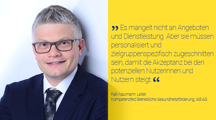 Ein Teil der Betriebe setzt aktuell BGF-Maßnahmen aus, weil die Beschäftigten in Kurzarbeit oder im Homeoffice sind, oder weil die Mittel knapp sind. Der andere Teil der Unternehmen geht bewusst auf die besonders belasteten Mitarbeiter zu. Zu ihnen zählen diejenigen, die ausschließlich im Homeoffice arbeiten, aber auch die gewerblichen Arbeitskräfte, die aktuell den Großteil der Wertschöpfung erzeugen. Die Motivation der Arbeitgeber liegt auf der Hand: Vielleicht verschwindet das gefährliche Virus dauerhaft, nicht jedoch der Fachkräftemangel. Daher wollen sie ihre Mitarbeiter bei der Bewältigung der neuen Arbeitsumstände unterstützen und längere Ausfälle aufgrund von psychischer und physischer (Über)Belastung verhindern.