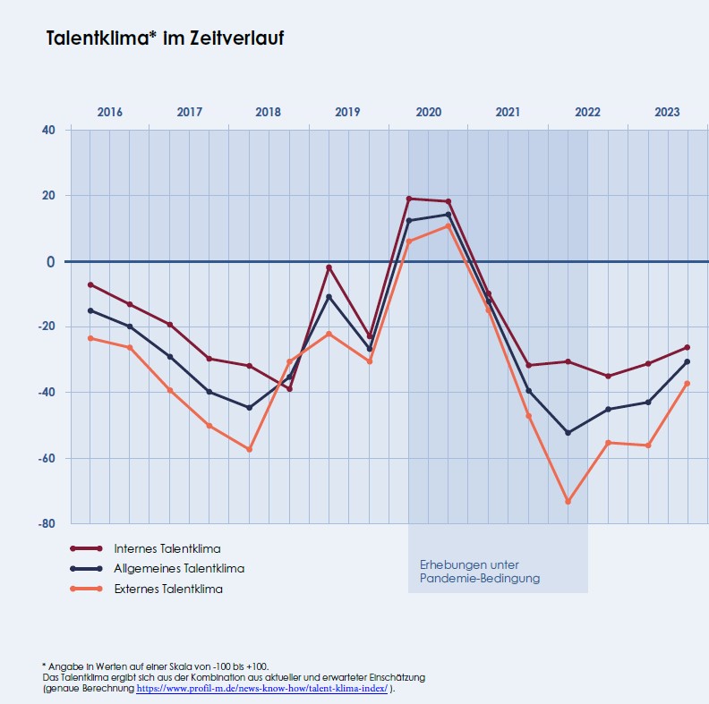 Neben der KI-Nutzung wurde in der 2016 gestartete Längsschnitt-Befragung im zweiten Halbjahr 2023 auch das allgemeine Talent Klima abgefragt.