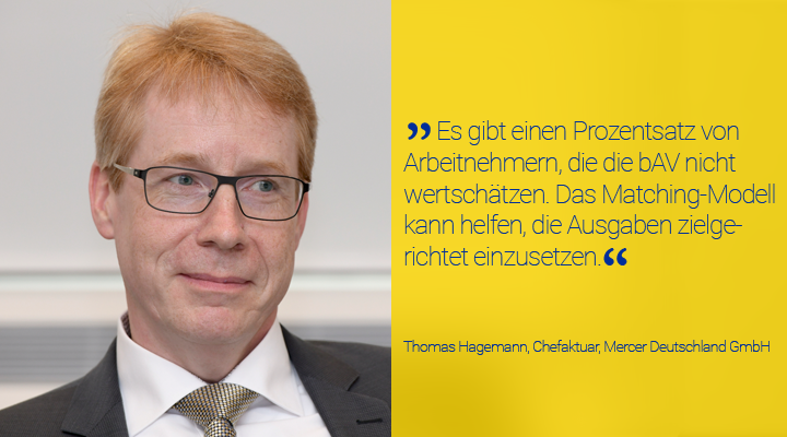 Trotz BRSG und Sozialpartnermodell: Die Gedankenspiele, wie eine großflächige Verbreitung der bAV unterstützt werden kann, gehen weiter. Die Annahme einiger bAV- Spezialisten lautet: Sowohl in Tarifverträgen, als auch bei den Unternehmen selbst rückt die Arbeitgeberfinanzierung der bAV in den Vordergrund, um Arbeitskräfte im engen Markt für sich zu gewinnen. Die Entgeltumwandlung wäre dann nur noch ein Add-on. Allerdings: Eine arbeitgeberfinanzierte bAV funktioniert nur in Zeiten annähernder Vollbeschäftigung. Und: ein gewisser Prozentsatz von Arbeitnehmern wertschätzt die bAV nicht. Unternehmen, die eine arbeitgeberfinanzierte bAV anbieten, würden bei einem Teil der Mitarbeiter die Ausgaben in den Sand setzen.