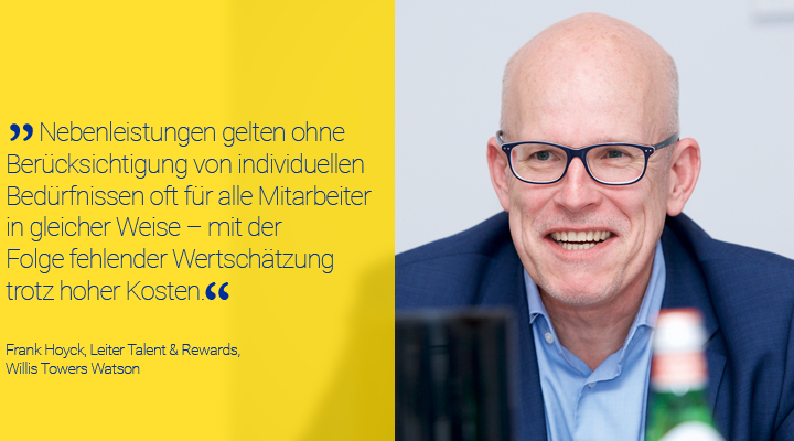 Die traditionellen Vergütungssysteme mit ihren analytischen Stellenbewertungssystemen und komplexen Strukturen geraten in der neuen Arbeitswelt unter Druck. Nicht nur Konzerne, auch mittelständische Unternehmen kommen nicht daran vorbei, die starren Strukturen ihrer Vergütungssysteme aufzubrechen. Dabei verliert die als gut und fair empfundene Vergütung nicht an Stellenwert – doch die Erwartung an ein Gesamtpaket von Nebenleistungen wächst. Im Trend liegen frei wählbare Benefits, die den individuellen Bedürfnissen des einzelnen Mitarbeiters entsprechen.
